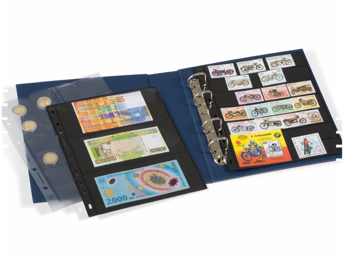 For passionate collectors: the OPTIMA PUR ringbinder holds postcards, letters, autograph cards, tickets, coins, stamps, banknotes, and much, much more. The album is suitable for all OPTIMA and OPTIMA XL sheets. Capacity: up to 60 OPTIMA sheets or 15 OPTIMA coin sheets. Binder without sheets. Robust 4 D-ring mechanism. Cover in stylish linen look with discreet transparent embossing and a flat spine. Completely PVC-free! Binder available separately or with slipcase, in many modern colors. Overall size binder: 270 x 248 x 55 mm (10 5/8 x 9 7/8 x 2 1/8"). Overall size incl. slipcase: 282 x 252 x 64 mm (11 1/8 x 10 x 2 1/2").